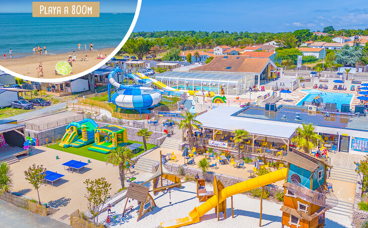 Ubicado a 800 metros de la playa, a medio camino entre Saint-Gilles-Croix-de-Vie y Les Sables d'Olonne, y a solo 5 minutos de Brétignolles-sur-Mer, se encuentra el camping de 4 estrellas Le Brandais en Brem-sur-Mer. Este lugar te invita a recargar energías en el corazón del litoral vendeano en un camping familiar acogedor. Disfruta de la zona acuática, las actividades y animaciones ofrecidas para unas vacaciones exitosas.